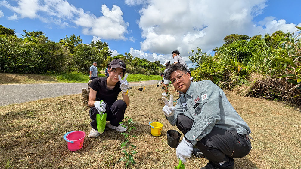 コロナ禍により、「森に学ぼうin大宜味村」育樹活動の一般参加は中止となりました。そこで、12月14日(火)に、社内関係者及びNPO法人大宜味まるごとツーリズム協会のスタッフと一緒に追肥を行ないました。