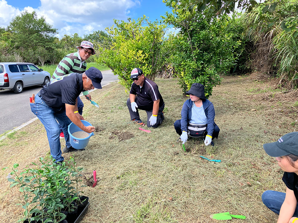 12月28日(土)、社内関係者及びNPO法人大宜味まるごとツーリズム協会のスタッフと一緒に追肥を行ないました。