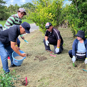 台風接近のため9月の開催はやむなく中止になりましたが、 後日NPO法人おおぎみまるごとツーリズム協会の皆さんと共に、これまで育ててきたシークワーサーとツバキ200本以上の苗木に肥料入れを行いました!