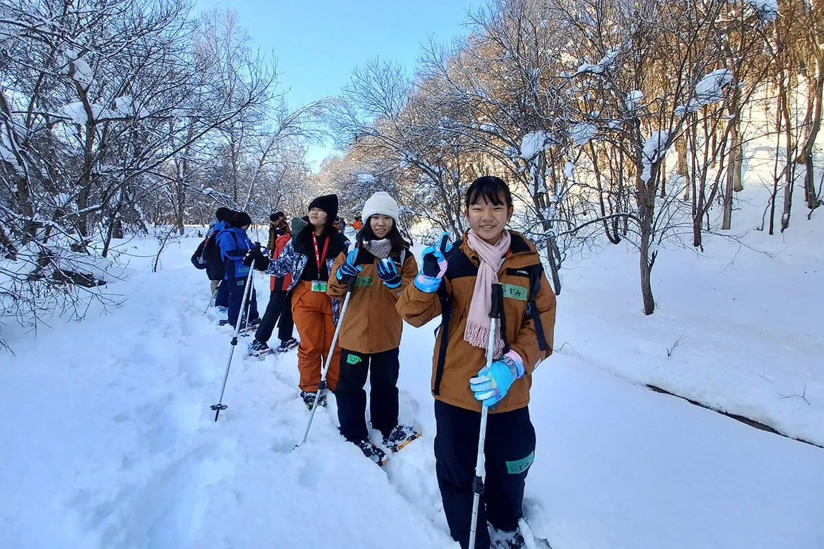 児童たちは雪の積もった栗山町の大自然の中でスノーシュー探索、アイスクリーム作り、トゥイックマグネットづくりなどを体験し、自然環境の保護と持続可能な生活について学びました。特に、初めて雪を見た児童たちの喜びはひとしおで、雪の中での活動に大いに興奮していました。