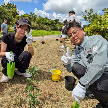 コロナ禍により、「森に学ぼうin大宜味村」育樹活動の一般参加は中止となりました。そこで、12月14日(火)に、社内関係者及びNPO法人大宜味まるごとツーリズム協会のスタッフと一緒に追肥を行ないました。